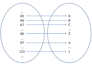For example, the ASCII table (http://www.asciitable.com/), a tool widely used in programming in the convenient use cases where one does not have to fiddle with Unicode character sets, represents multiple relations in an extremely compact form. One of these relations is a relation between the integers and the letters of the alphabet. This relation can be represented by the following arrow diagram: