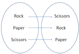 $$\{ (Rock, Scissors), (Scissors, Paper), (Paper, Rock) \}$$